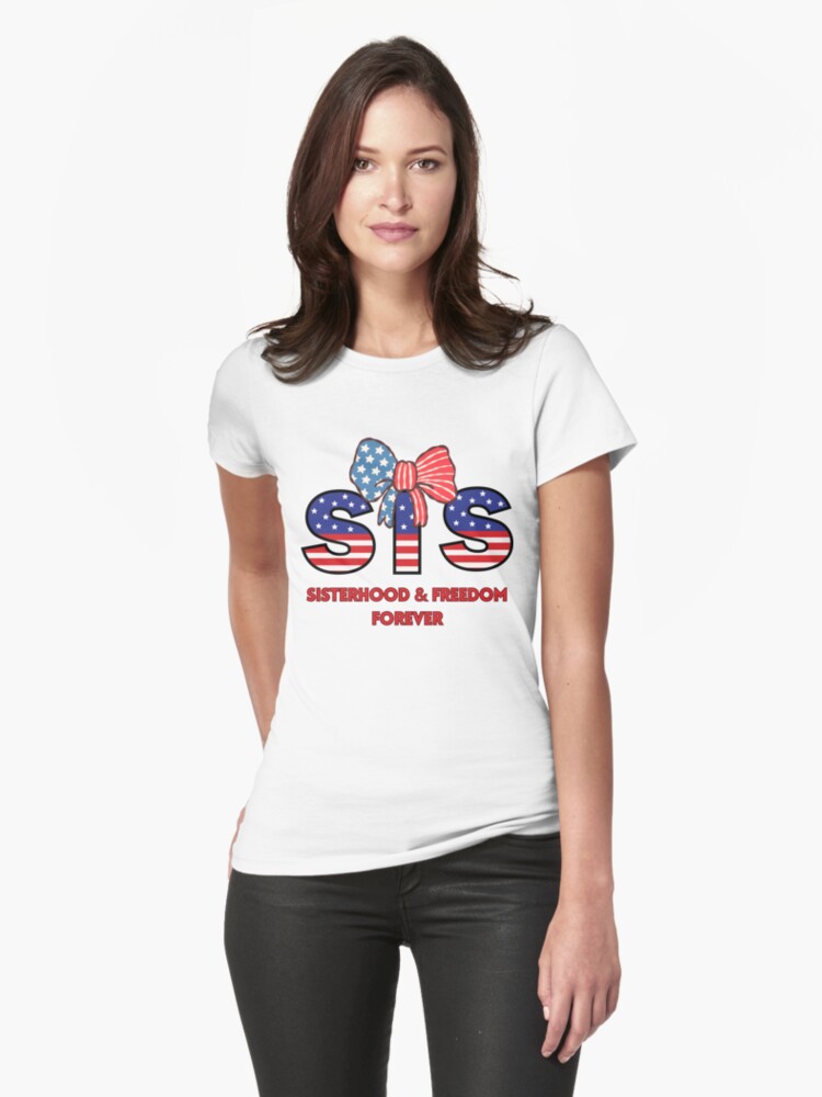 👚Sisterhood & Freedom Forever Fitted T-Shirt – Cute 4th of July Outfits for Women | Slim-Fit Patriotic Tee for Besties, Moms & Daughters | Celebrate Independence Day in Red, White & Bold Style